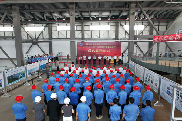 滄州市政府副秘書長徐超、滄州市工信局黨組書記、局長孫西讓、滄州高新區黨工委副書記、管委會主任夏軍等領導出席點火啟動儀式,董事長王煥一現場致辭。滄州市及高新區主管部門負責同志、制藥行業的同仁以及公司建設團隊、營銷團隊、職工代表共同見證了這一重要時刻。儀式由滄州高新區黨工委委員、管委會副主任趙春榮主持。